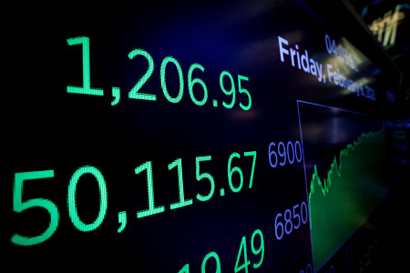 6日のニューヨーク株式相場は、最近大きく下げていたハイテク株の買い戻しなどに支えられ、大幅反発した。ダウ工業株30種平均の終値は5万0115.67ドルと史上最高値を更新し、初めて5万ドルの大台に乗せた 【ロイター時事】