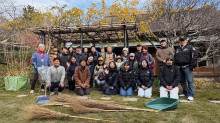 今回の掃除のきっかけはメンバーの一人が、同邸を管理している佐藤晴美さんがいつも1人で庭掃除をしているという話を聞いたこと。「いつものまち歩きでも前を通ることがあり、広い庭に木々もたくさん見えるので、秋には掃除も大変そうだと話していた」という上岡さんが佐藤さんに手伝いたいと提案した。
