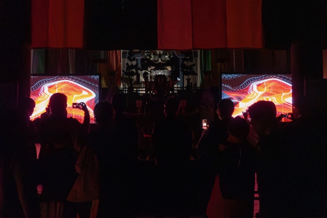 法堂で脇田玲さんによる「龍雨図」を見る来場者