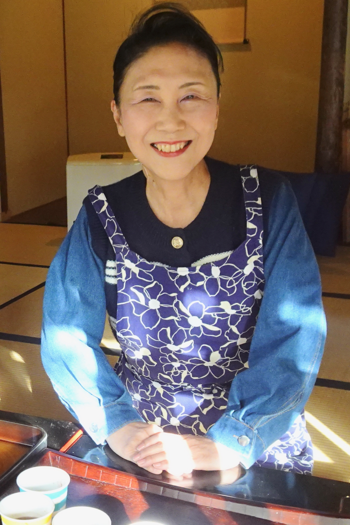 「いつもは1人で1時間やっても終わらない。今日は本当にありがたかった」と話す佐藤晴美さんは、白玉入りの汁粉を振る舞った