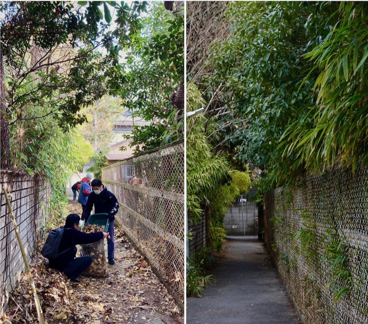 同邸の人通りが少ない裏の路地のビフォー・アフター。「久しぶりに地面が見えた」と佐藤さん