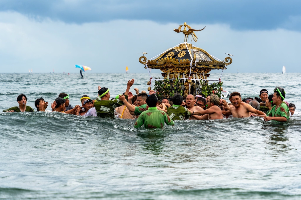 前回の鎌倉市商店街連合会会長賞作品の「どっこい、どっこい!」(森崎清光さん)は、材木座海岸での「乱材祭」で撮影。「どっこい、どっこい」というかけ声が聞こえてくるようなシーン