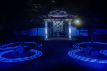 ライトアップしたミストが雲海のように漂う方丈庭園の「雲海 風龍の舞」